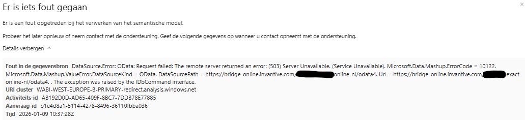 Op dit moment weer 503 meldingen op Invantive Bridge Online helaas (Power BI niet mogelijk om te vernieuwen).