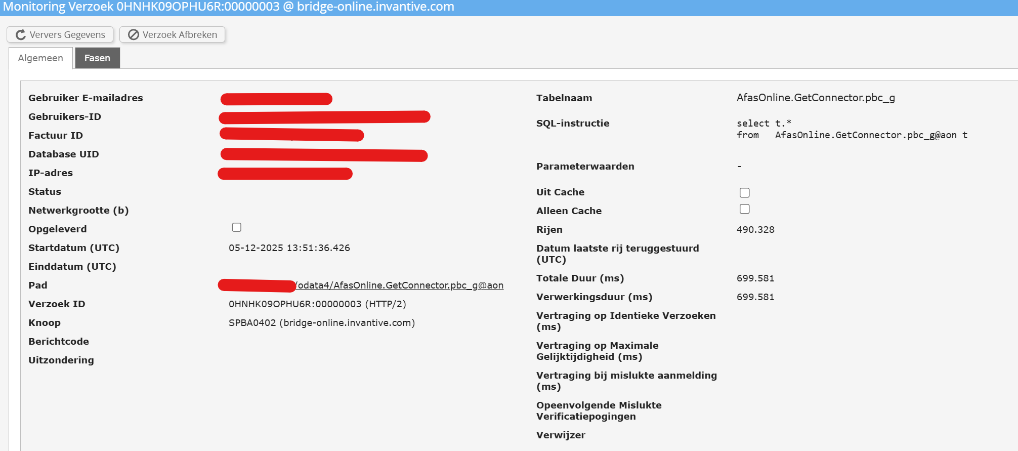 Ik haal via Power Query c. 10 tabellen uit AFAS op, bijna allemaal standaard getconnectors die te vinden zijn in jullie documentatie. De grootste is c. 400k regels. In de huidige dataflow haal ik puur de data op, verder geen acties. Deze dataflow klapt er na 2 uur refreshen op de PBI service uit, de Invantive monitoring registreert de tabellen allemaal, maar nergens zie ik een succesvol resultaat. Ook wordt nergens het aantal opgehaalde regels getoond.