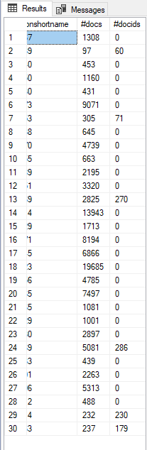 De kolom [#docids] bevat het aantal binaire documenten dat daadwerkelijk binnengehaald is.