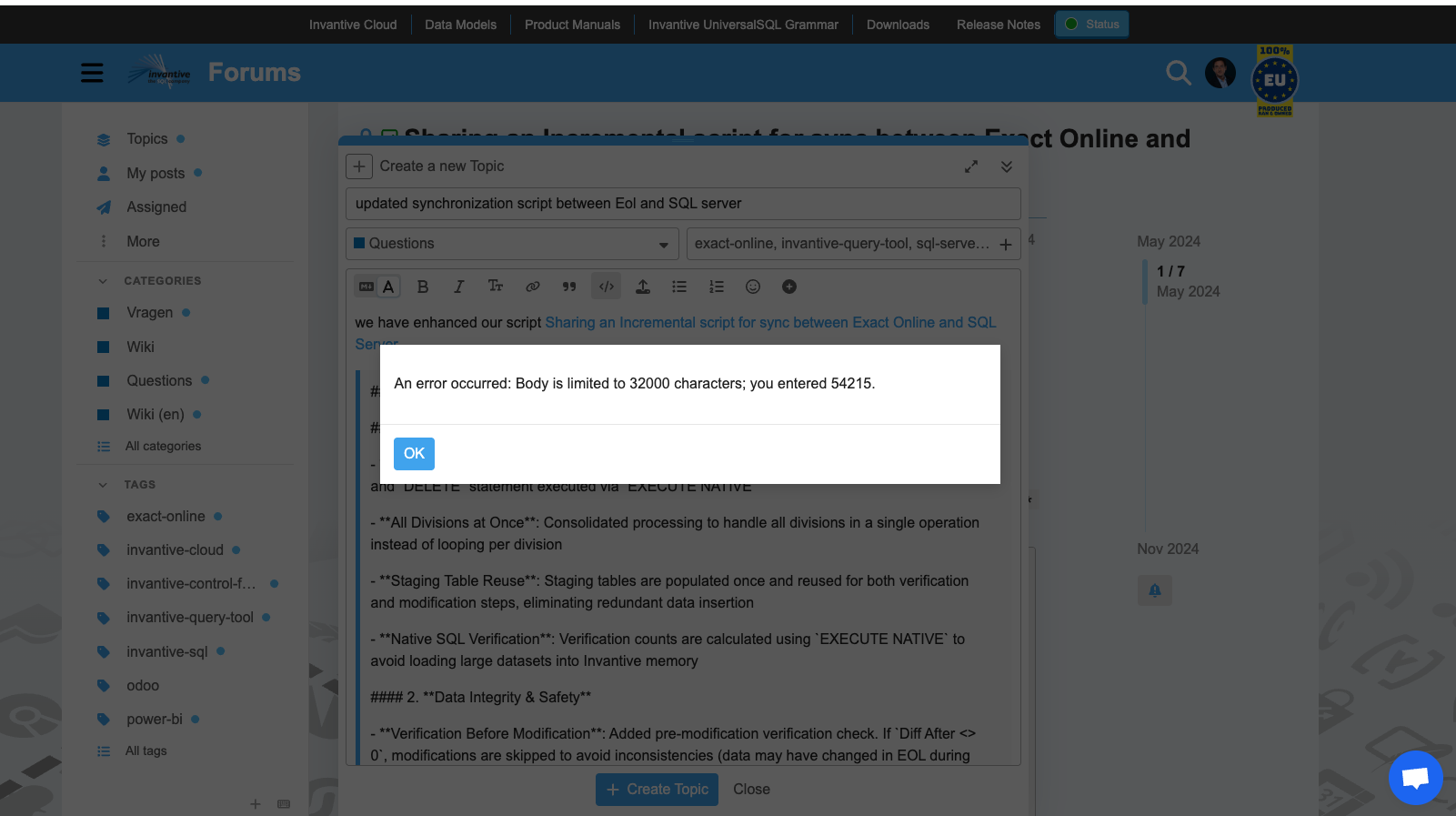 Please add an attachment, simplify the SQL statements or send the attachment to info@invantive.eu with the URL in the subject.