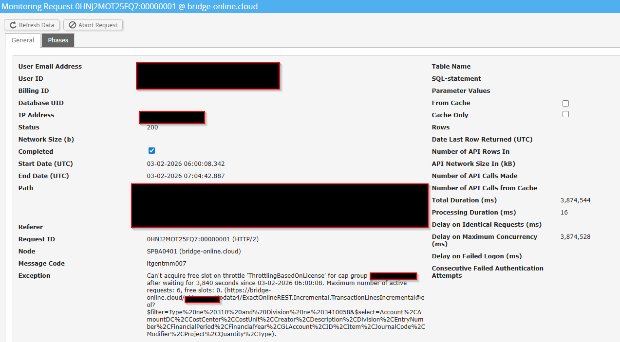 We hebben een klantdashboard dat de afgelopen 6–12 maanden zonder problemen is ververst. Er zijn in deze periode geen wijzigingen gedaan aan het dashboard of het datamodel. Toch is de refresh nu onverwacht mislukt. Gisteren duurde de verversing 5,5 uur, terwijl dit normaal ongeveer 20 minuten kost. Wij verwachten dat hier een probleem is ontstaan in de back-end.