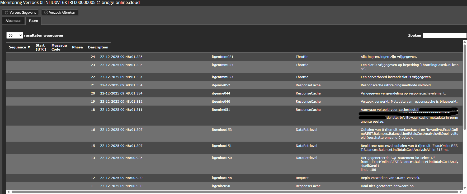 Dit probleem treedt op ondanks dat we weten dat er wel degelijk data beschikbaar is in deze tabellen. Eerder (in het verleden) konden we deze data succesvol ophalen.