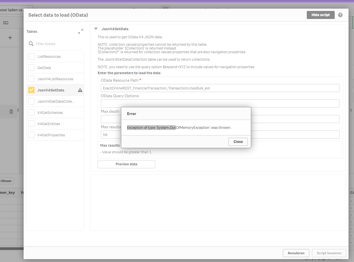 $filter),TransactionLinesIncremental die het aantal kolommen beperkt door afgeleide velden weg te laten.Ik kan er geen filter in zetten daar ik niet bij het inladen van script ansich kom om zo de data stroom te beperken ?