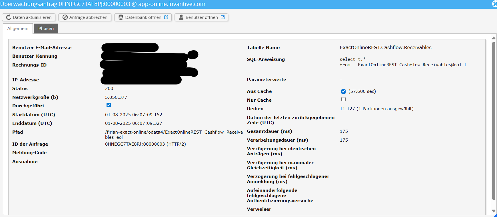 Please make sure to select the request to display the details. Only one single request should be visible in the screenshot.