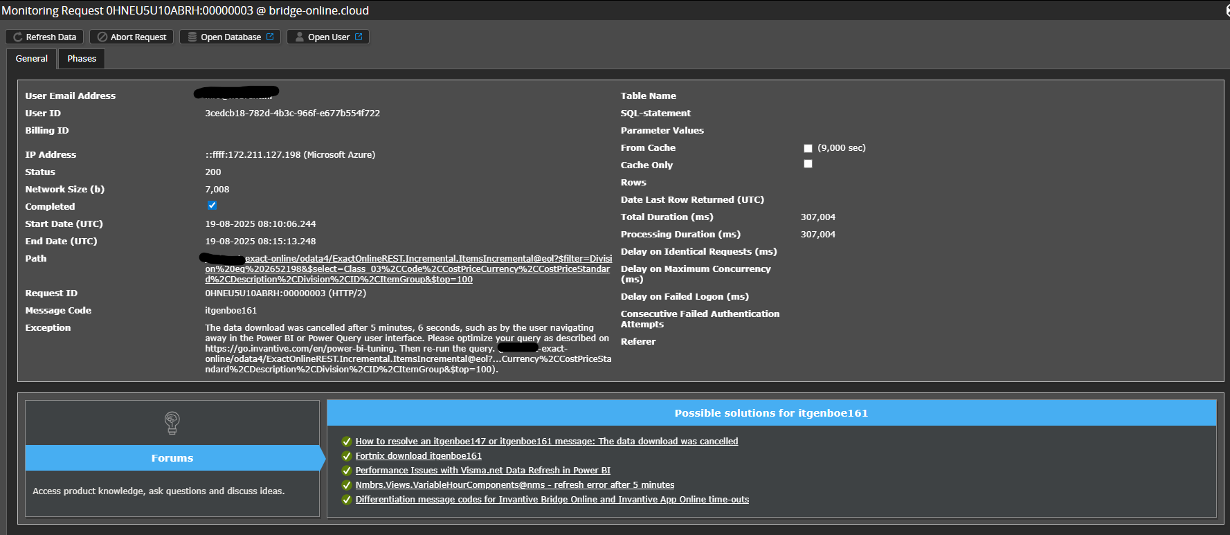 Ik ervaar nog steeds problemen bij een klant met de ItemsIncremental tabel. Na het terugdraaien van de breaking change van Exact Online verversen alle tabellen weer prima en snel, behalve deze.