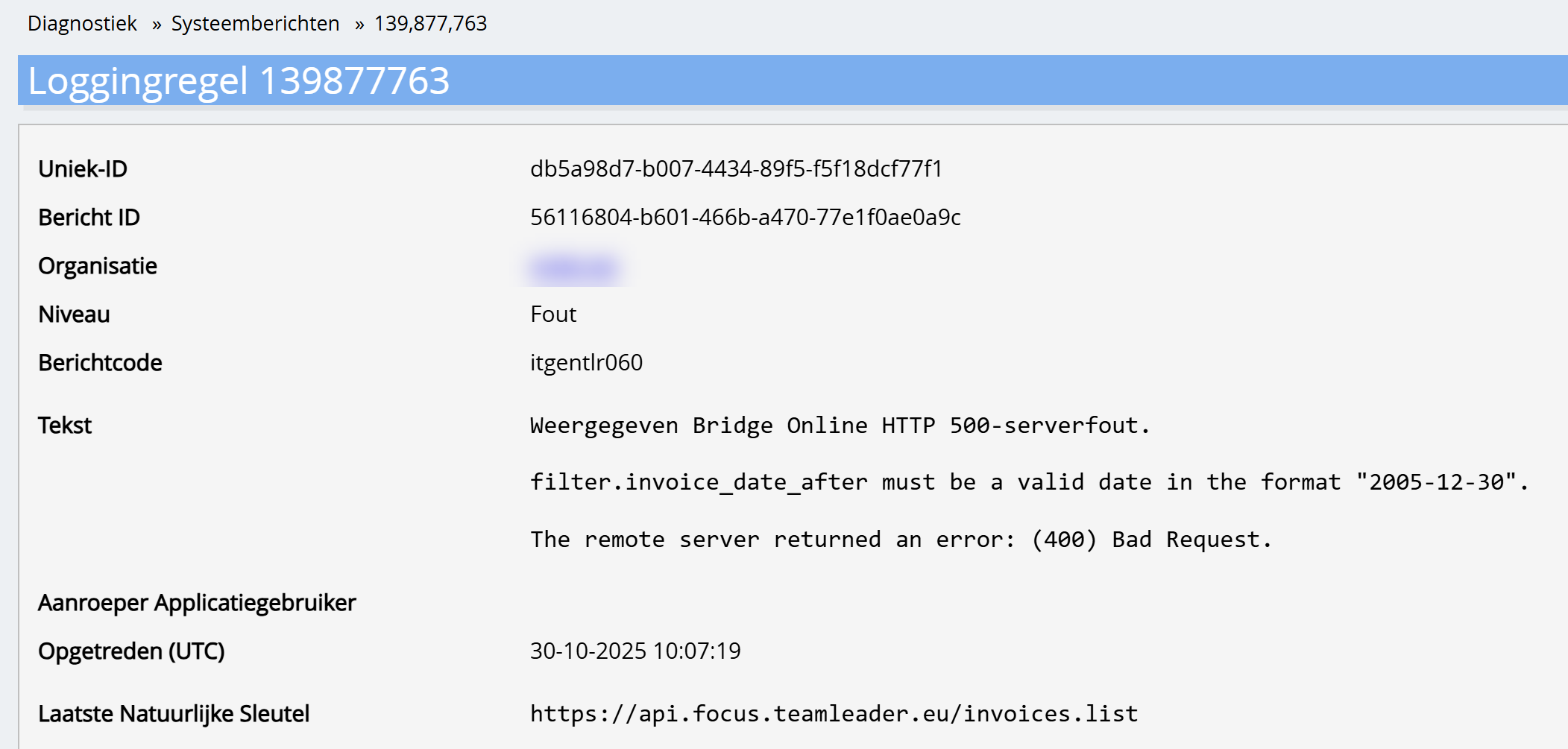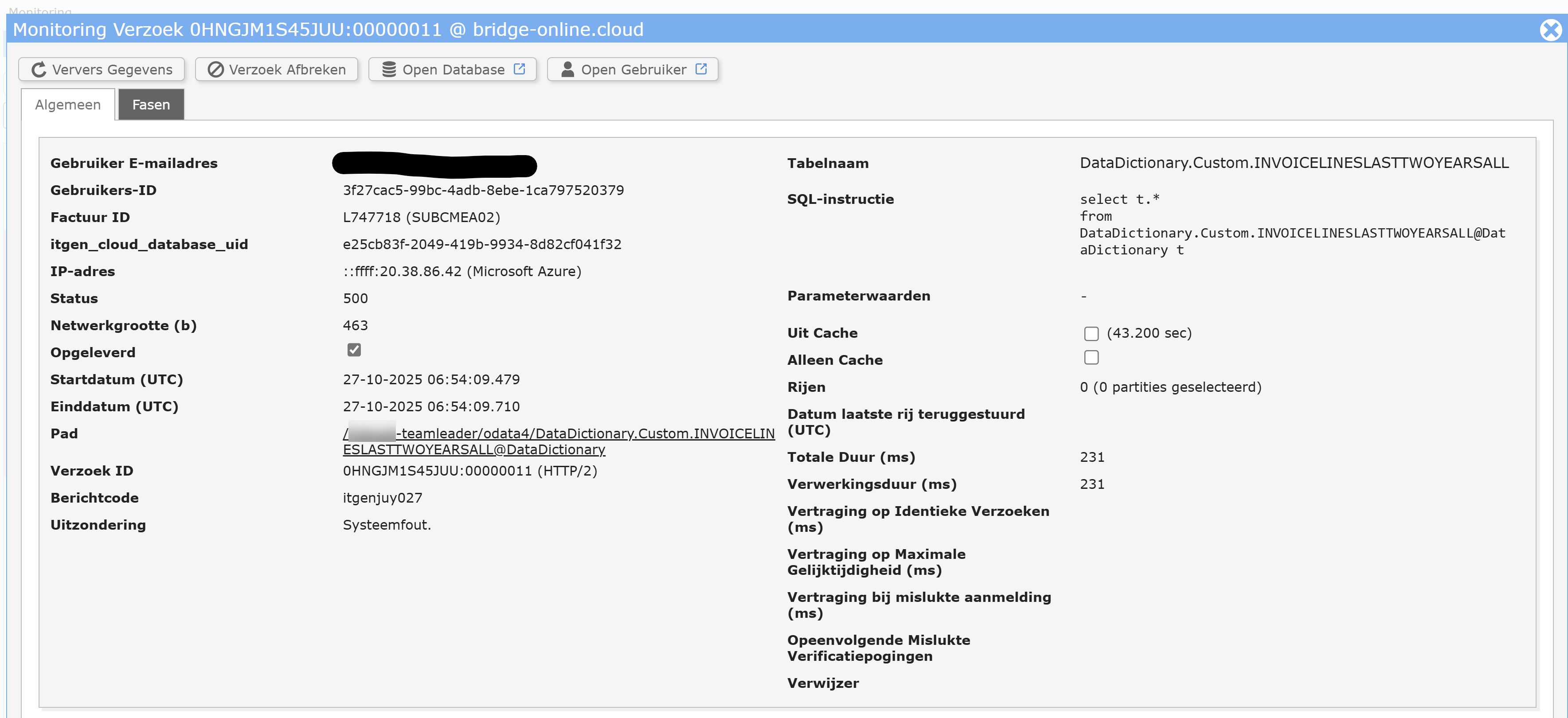 Is het mogelijk om een (geanonimiseerde) schermafdruk van de details van een verzoek van 30 oktober 2025 in Invantive Bridge Online Monitoring toe te voegen zoals beschreven in Meer inzicht met nieuwe Bridge Online Monitoring?