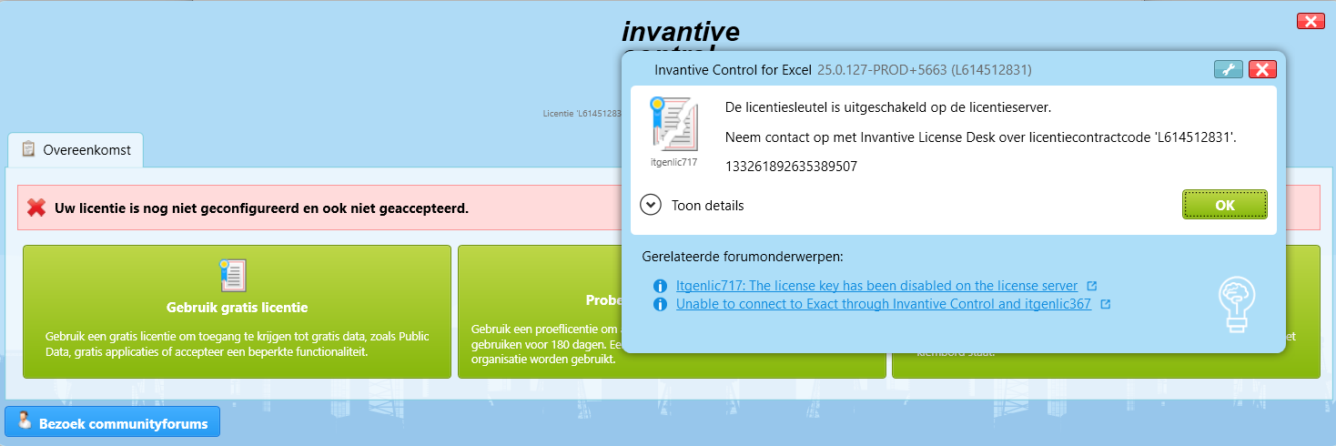 Advies is om de nieuwe licentiesleutel te installeren. Deze vindt u op omstreeks 3 december in de mailbox van de licentiecoordinator en in het scherm Licentiesleutels op Invantive Cloud in het menu “Licentiering”.