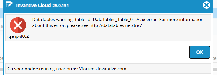 Deze foutmelding komt waarschijnlijk uit het scherm met licentiesleutels. Een bug was hierin gisteren aanwezig. Deze is inmiddels opgelost en in productie genomen.