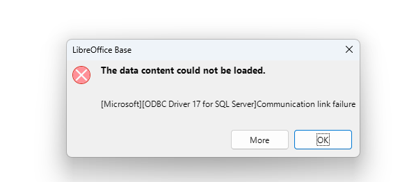 ODBC Driver 17 for SQL Server: LibreOffice Base