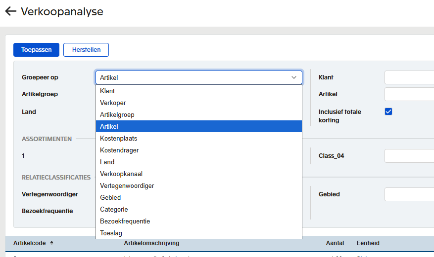 Als ik in Exact Online bij de verkoopanalyse kijk zie ik omzetgroep staan. Echter kan ik deze nergens vinden in de Invantive query en dus ook niet in Power BI.