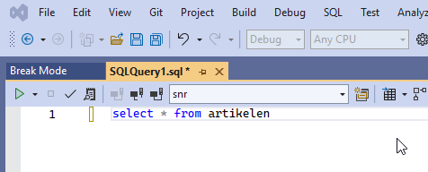 Visual Studio 2022 stuurt de volgende query onafgehandelde SQL: