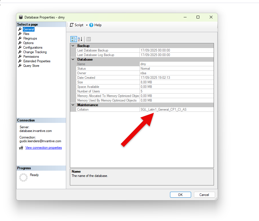 De default collation van de Invantive UniversalSQL Server is momenteel SQL_Latin1_General_CP1_CI_AS. Alhoewel alle varchar2-velden geprojecteerd worden op SQL Server datatype nvarchar