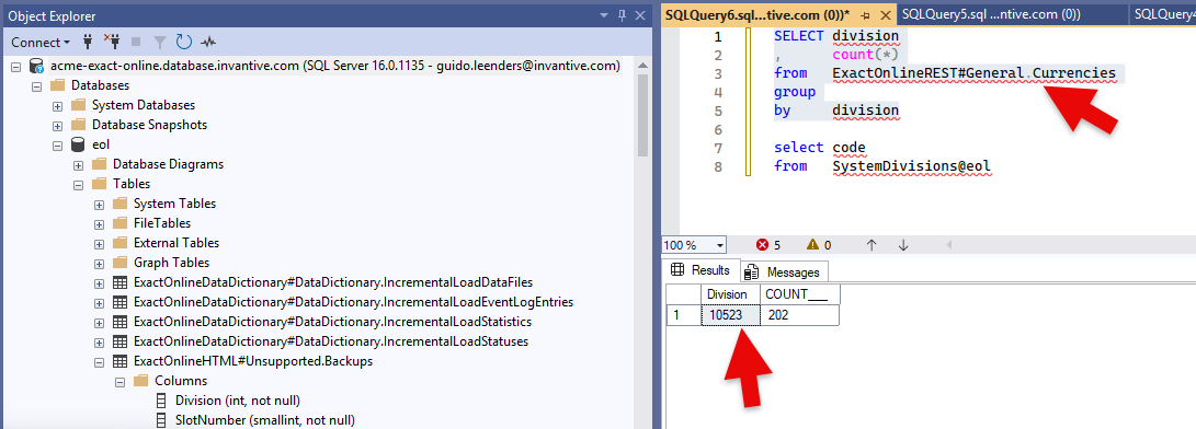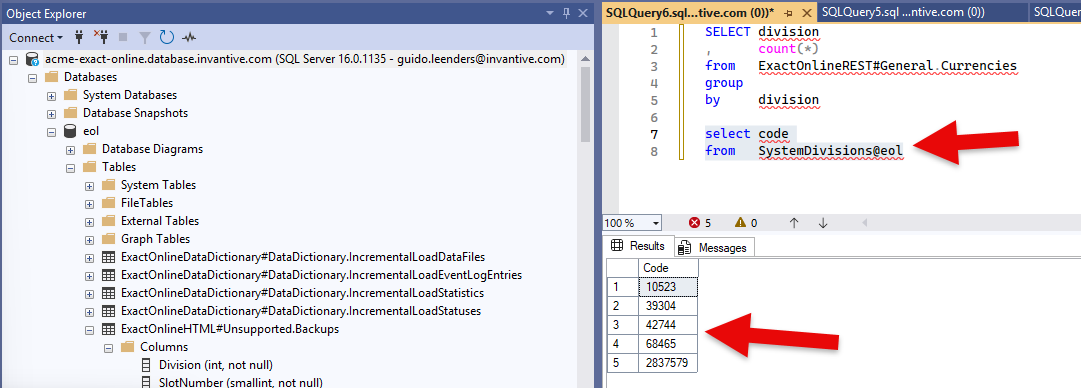 Ik heb een database met 5 Exact Online-administraties. In Startup SQL staat use all@eol