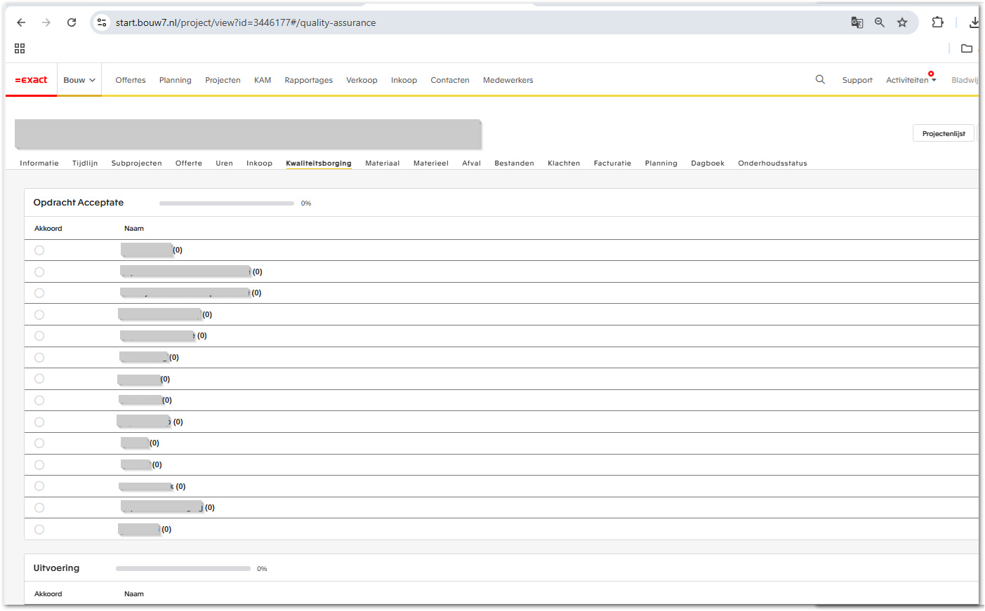 Uit welke tabel kan ik de informatie vinden over de kwaliteitsborging uit Bouw 7. (zie printscreen)
