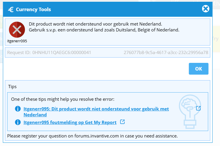 Deze melding treedt structureel op sinds 1 januari 2026 in varianten voor verschillende landen: