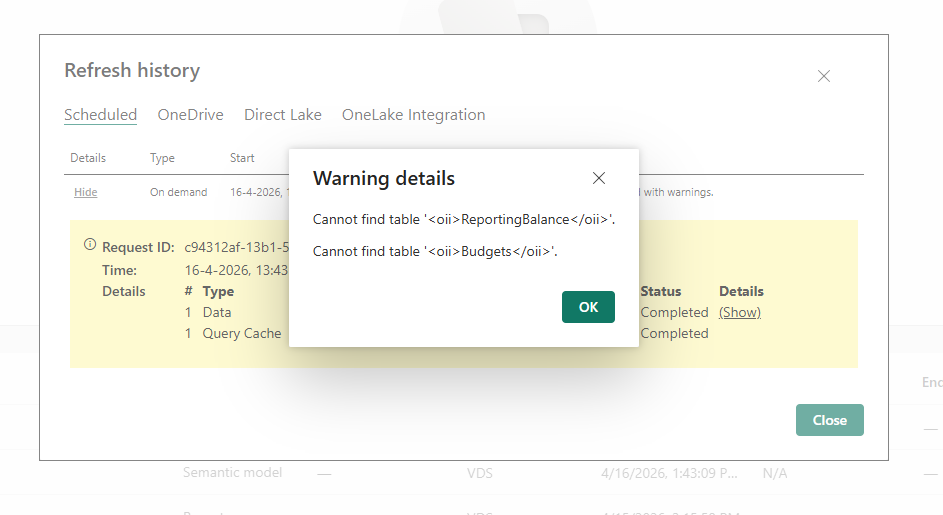 Het verversen in power bi service gaat sinds kort fout. Eerder ging het wel goed. In power bi desktop gaat het nog steeds goed.