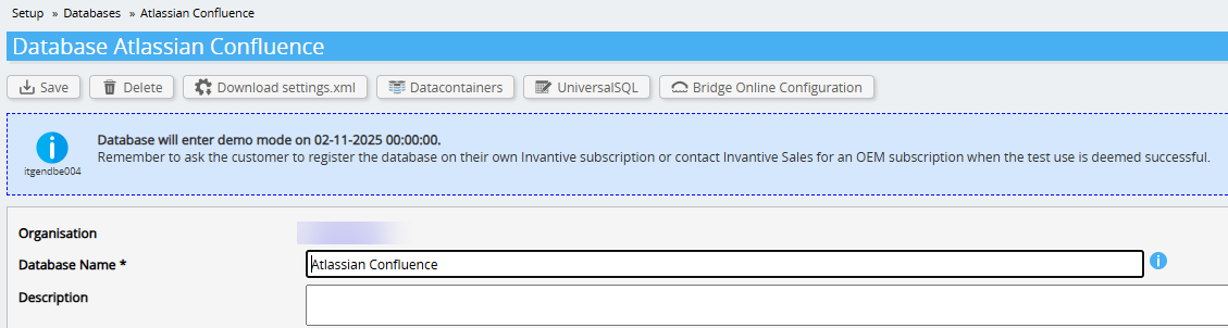 Our implementation partners register databases for tests and implementations. A database typically can be used for at most 6 months before entering demo mode.
