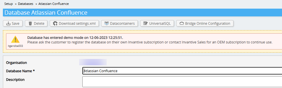 Please ask the customer to register the database on their own Invantive subscription or contact Invantive Sales for an OEM subscription to continue use.
